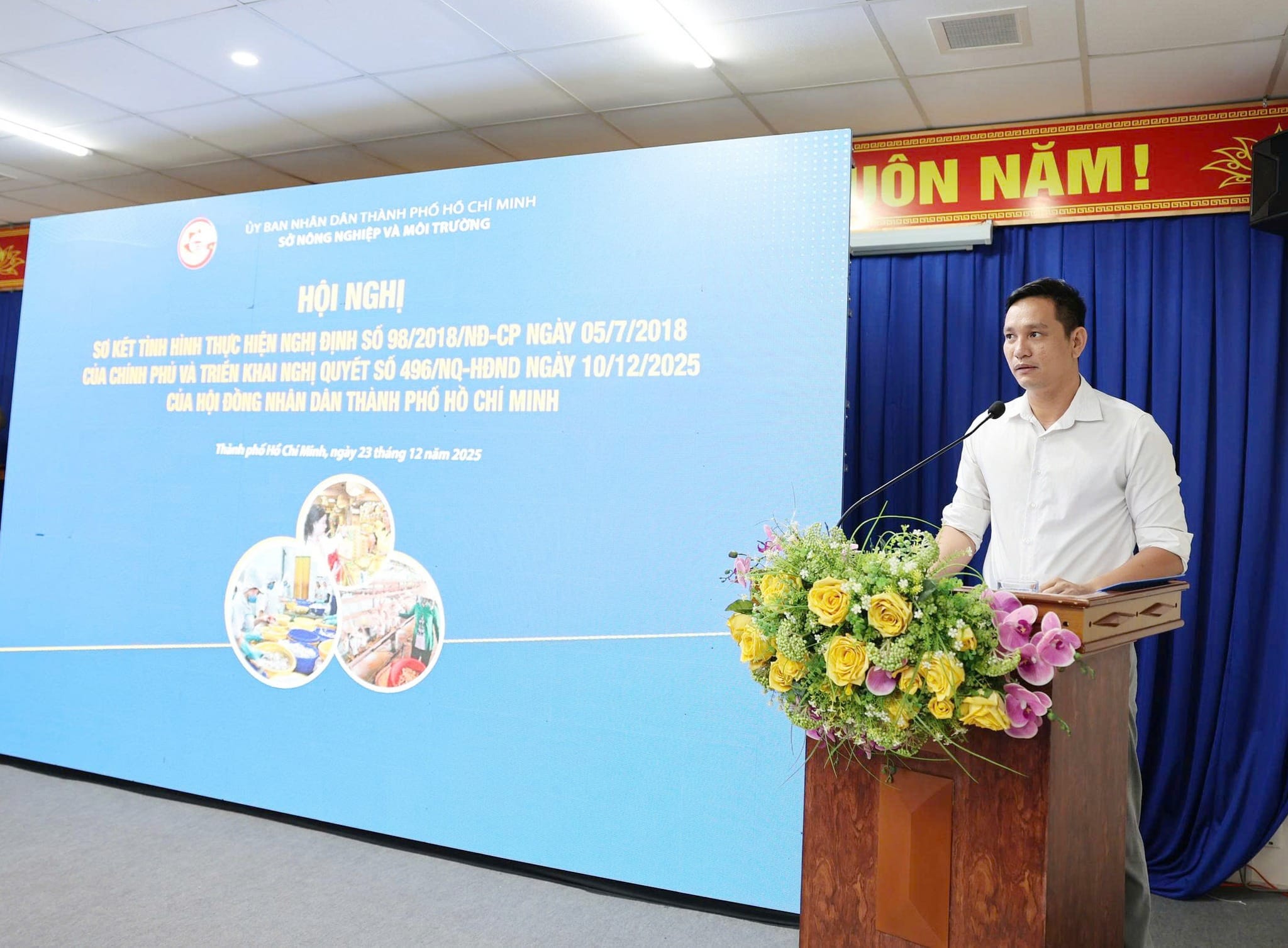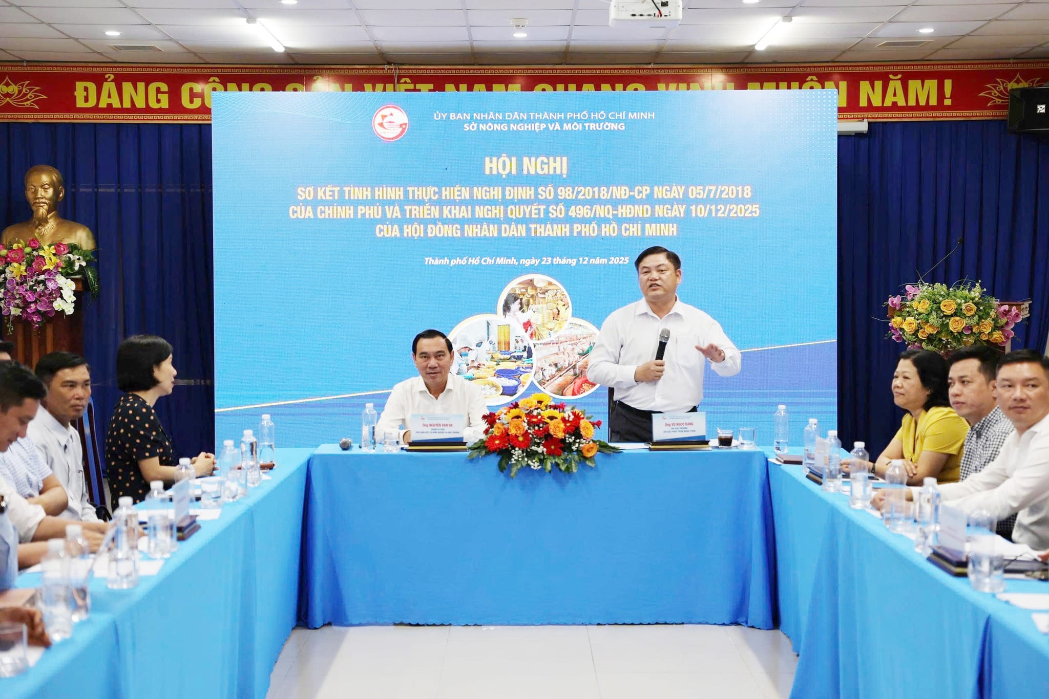 Sáng 23/12, Sở Nông nghiệp và Môi trường Thành phố Hồ Chí Minh tổ chức Hội nghị sơ kết tình hình thực hiện Nghị định số 98/2018/NĐ-CP ngày 05/7/2018 của Chính phủ và triển khai nghị quyết số 496/NQ-HĐND ngày 10/12/2025 của Hội đồng nhân dân thành phố Hồ Chí Minh.